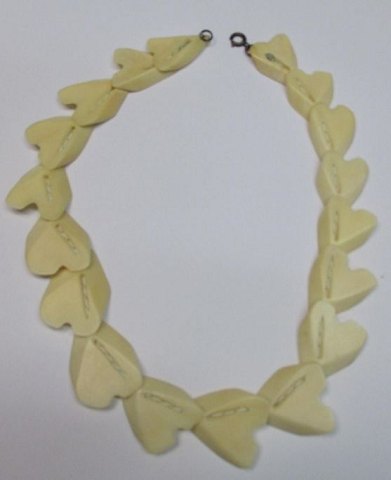 Grønlandsk kæde i ben, 20. årh. Formet som hjerter. L.: 38 cm.