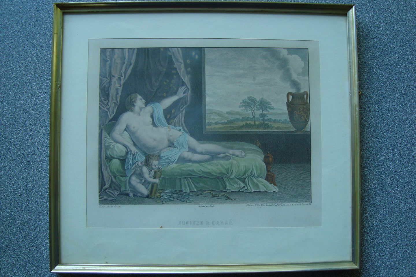 Koloreret kobberstik af Noël le Mire - Jupiter & Danaé.