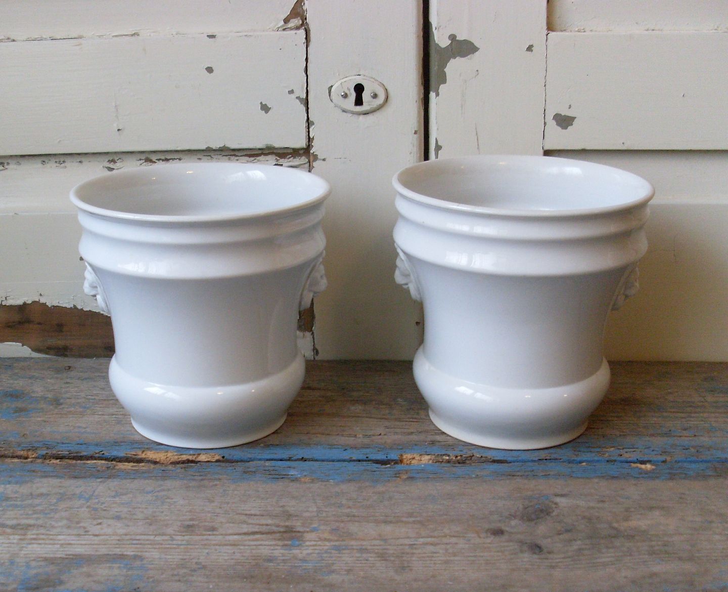 Par smukke Villeroy & Boch urtepotter med løve hoveder på siderne.