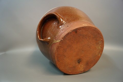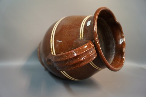 Large brown ceramic jug with white stripes.