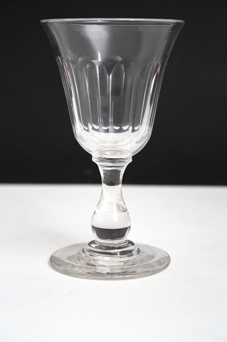 Klokkeformet glas med olivslibninger på kumme og balusterformet stilk,