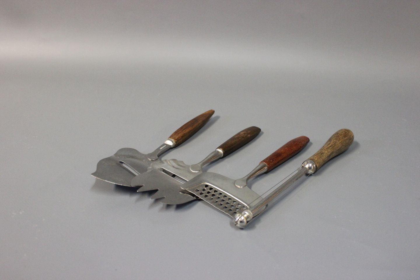 Forskellige ostehøvlere samt rive i palisander. Dansk design fra 1960erne.