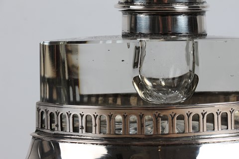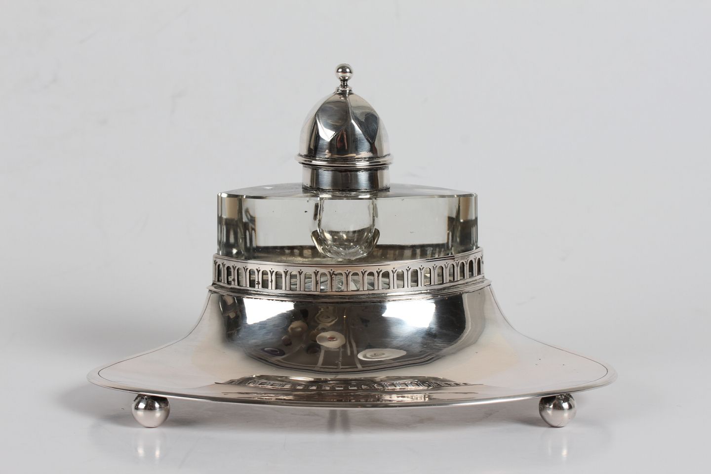 Gammel skrivesæt fremstillet af ægte sølv med glas blækhus og låg