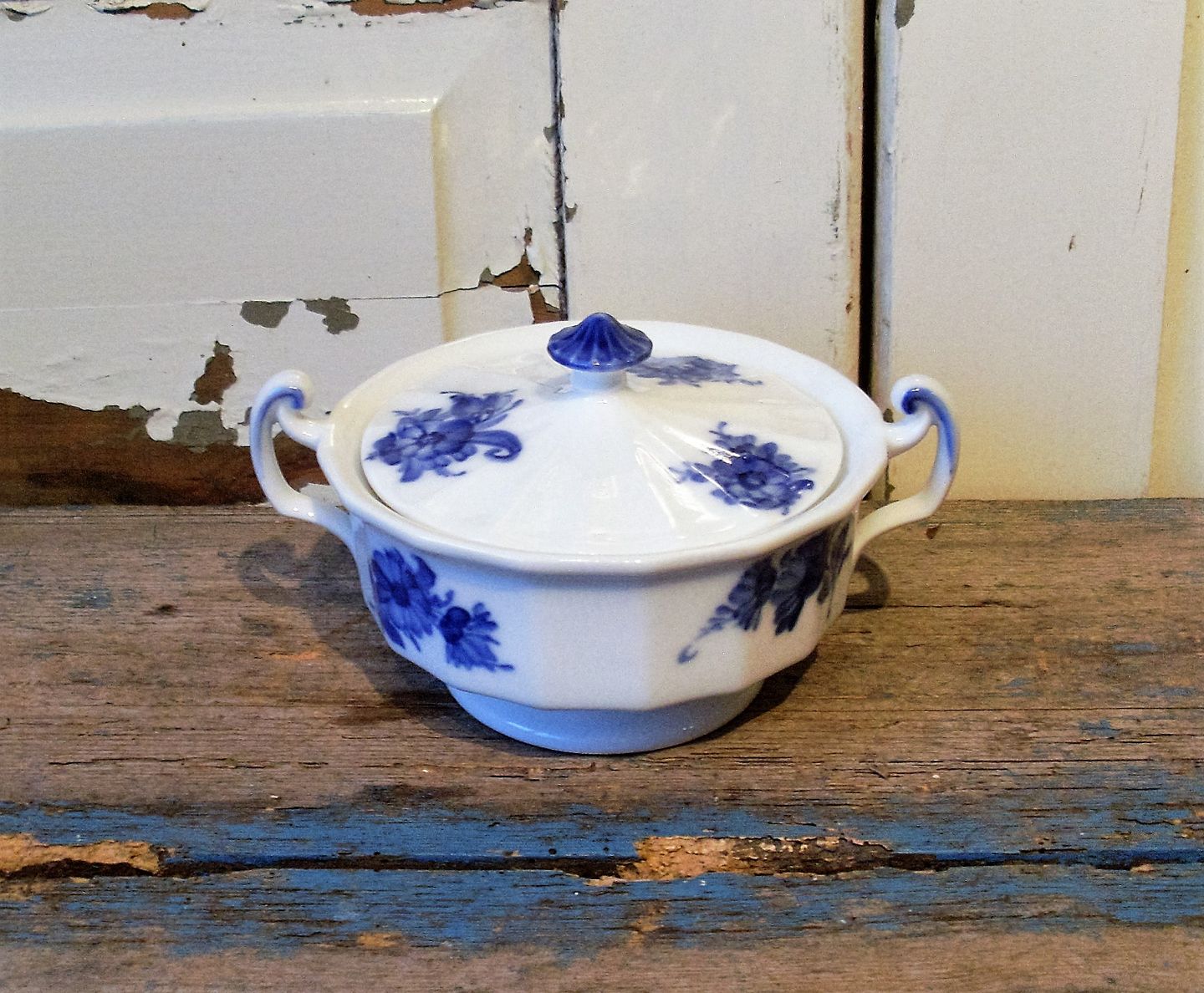 Royal Copenhagen Kantet Blå Blomst sukkerskål no. 8563