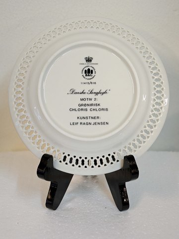 Grønirisk vægplatte (nr. 11415/616). Motiv nr. 2 i serien ”Danske sangfugle” af Leif Ragn Jensen for Bing og Grøndahl. Intakt. 1. sort.