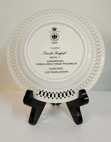 Sangdrossel vægplatte (nr. 11419/616). Motiv nr. 7 i serien ”Danske sangfugle” af Leif Ragn Jensen for Bing og Grøndahl. Intakt. 1. sort.