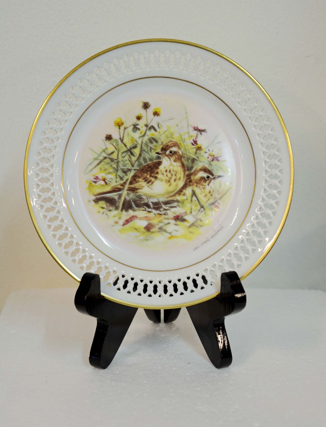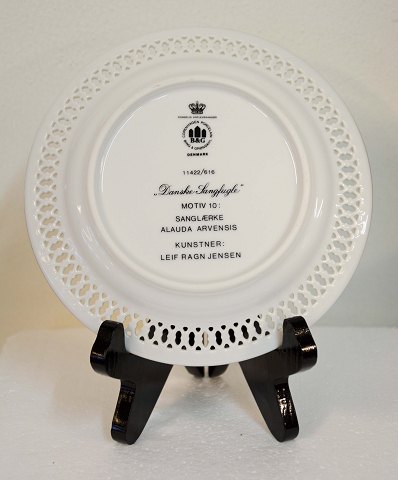 Sanglærke vægplatte (nr. 11422/616). Motiv nr. 10 i serien ”Danske sangfugle” af Leif Ragn Jensen for Bing og Grøndahl. Intakt. 1. sort.