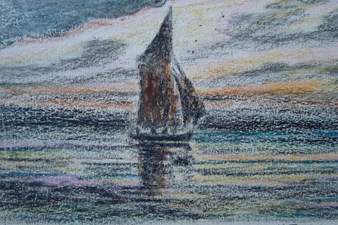 Oliekridt af H. Frederik Jensen - Sejlskib på havet 1933.