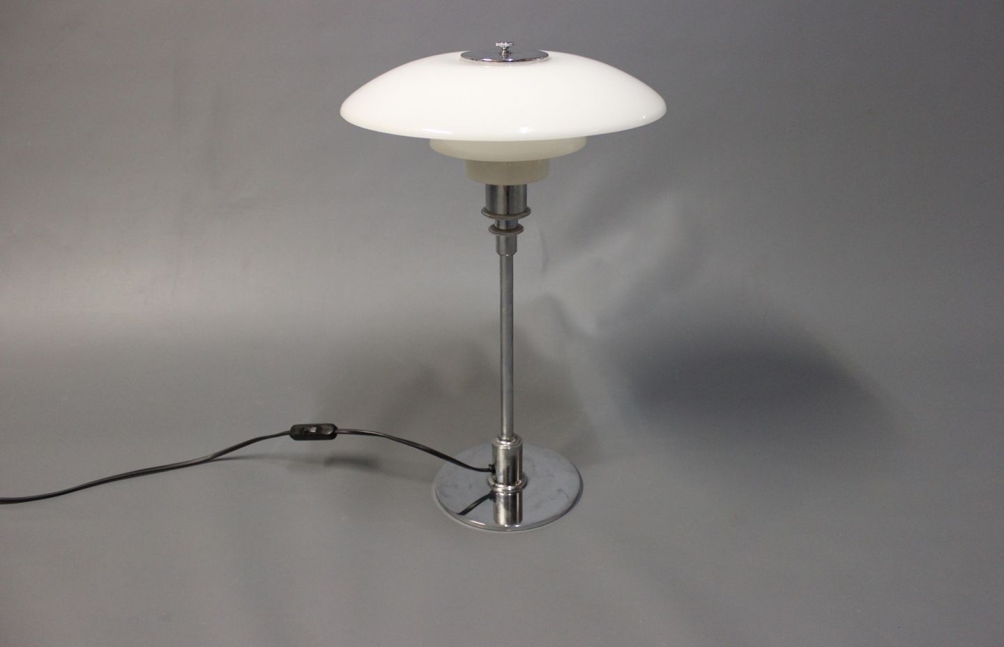 PH 3/2 table lamp as it is today was designed in 1999, but the style is from the 1930s, by Poul Henningsen and manufactured at Louis Poulsen.