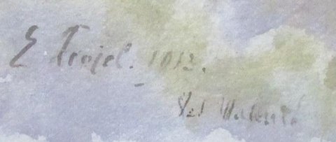 Troyel, Emil (1847 - 1935) Frankrig: Bjerglandskab. Akvarel. Signeret: E. Trojel 1913. 25 x 35 cm.