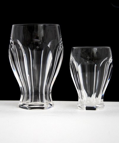 Holmegaard/ Val Saint Lambert, Lalaing. Produceret i perioden 1916-1934. Dette er et oversigtsbillede for at se nogle af de forskellige størrelser. På de enkelte fotos af de enkelte glas fremgår pris og lager. Det er kun dem der er enkeltfotos af, der er på lager.