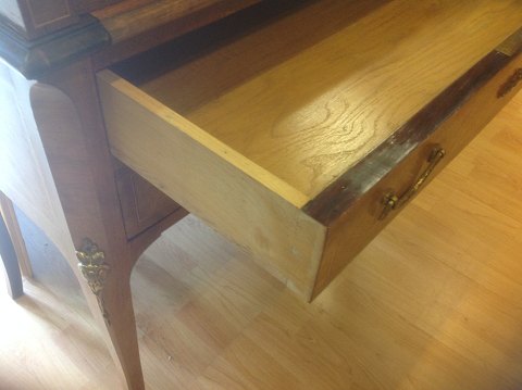bag klap udtræks skriveplade og 3 skuffer , 2 låger. og hylde.