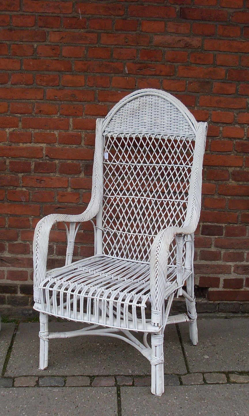 Meget smuk gammel kurvestol, bemærk de fint flettede armlæn.