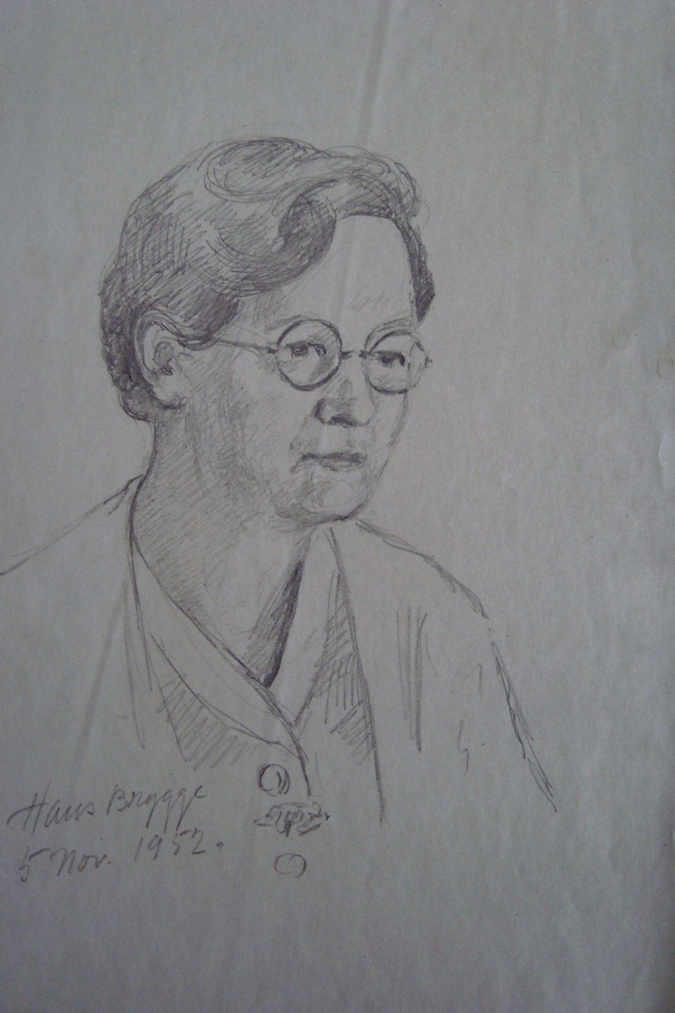 Blyantstegning af Hans Brygge 1952 - Kvindeportræt.