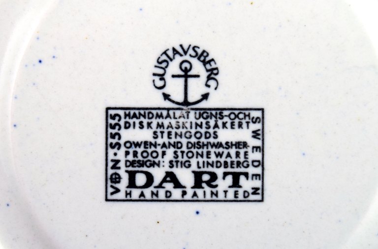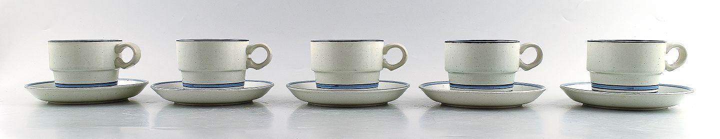 Stig Lindberg (1916-1982), Gustavsberg. 5 sæt "Dart" kaffekopper i håndmalet stentøj.