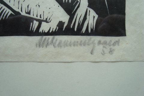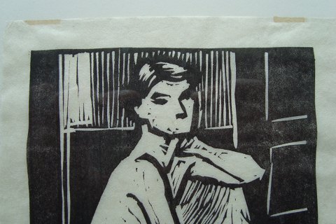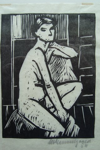 Træsnit af Albert Gammelgaard - Nøgen kvindelig model 1958.