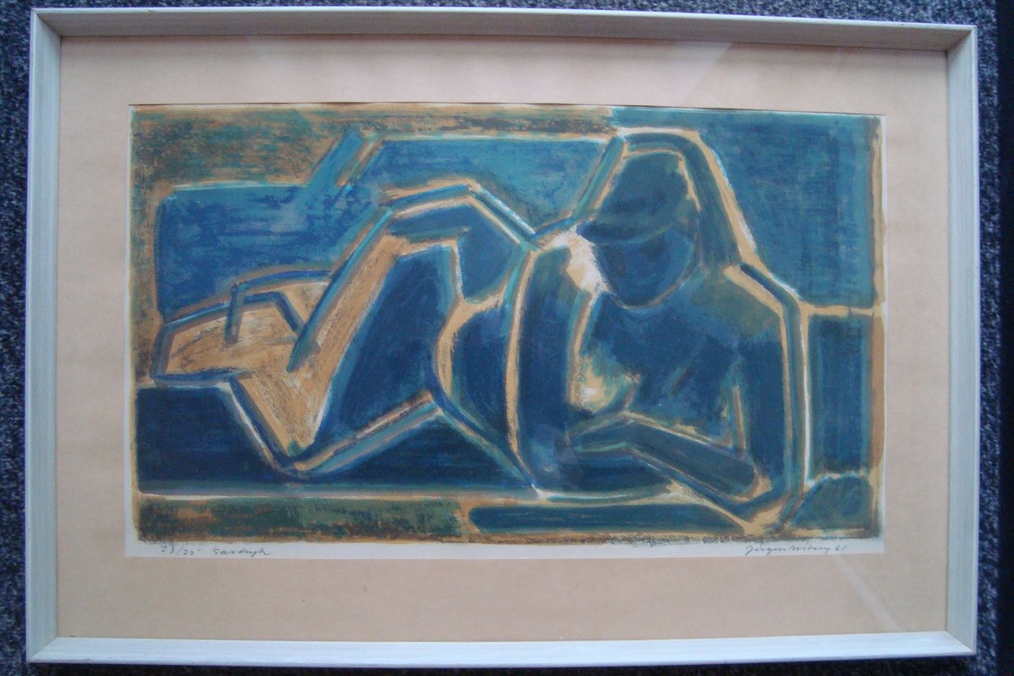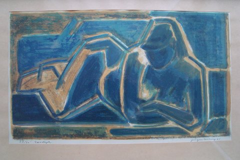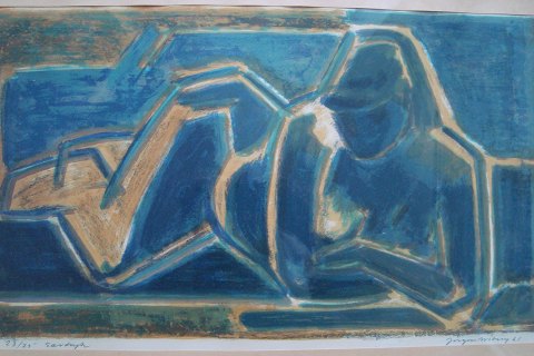 Litografi af Jørgen Wiberg 1961 - Liggende nøgen kvinde.