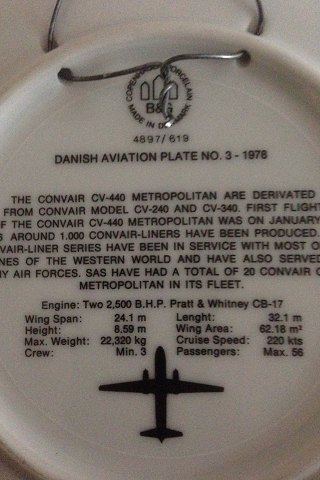 Bing & Grondahl SAS Aviation Plate No 3 1978