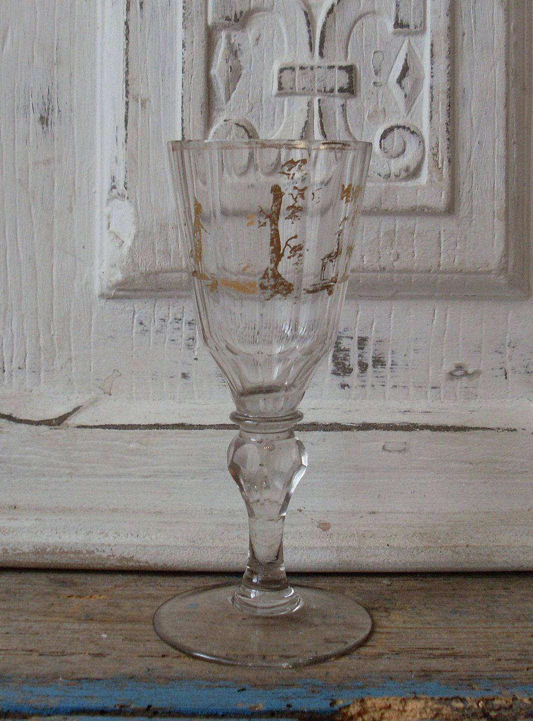 Böhmen-Schlesien vinglas med forgyldt dekoration 1800tallets første halvdel.