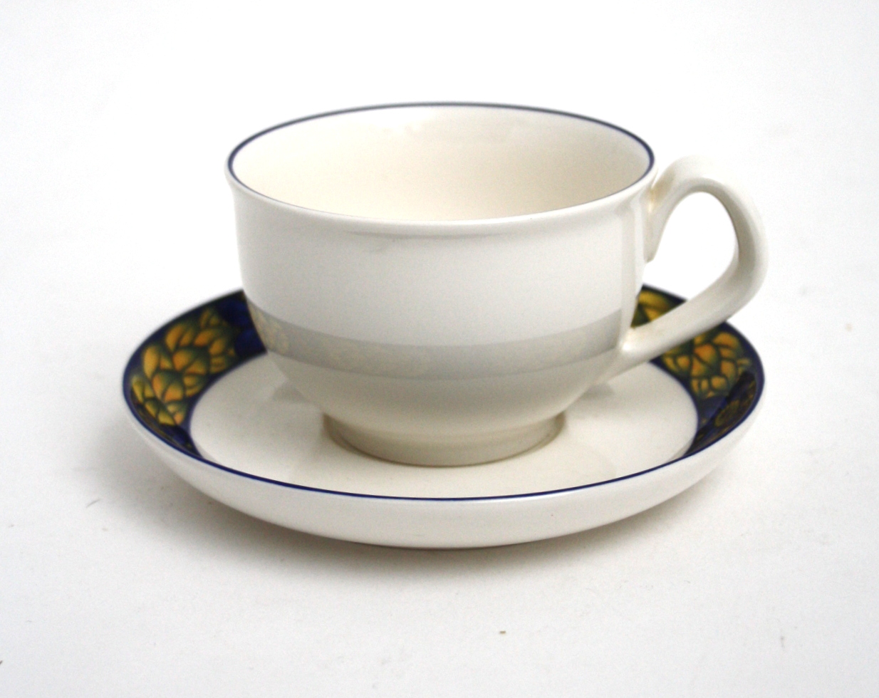Kaffekop med mønsterbort og underkop med mønster. Nr. 072. Højde 6 cm. Diameter 8,5 cm. Pris: 150 kr. stk. Lager: 1
