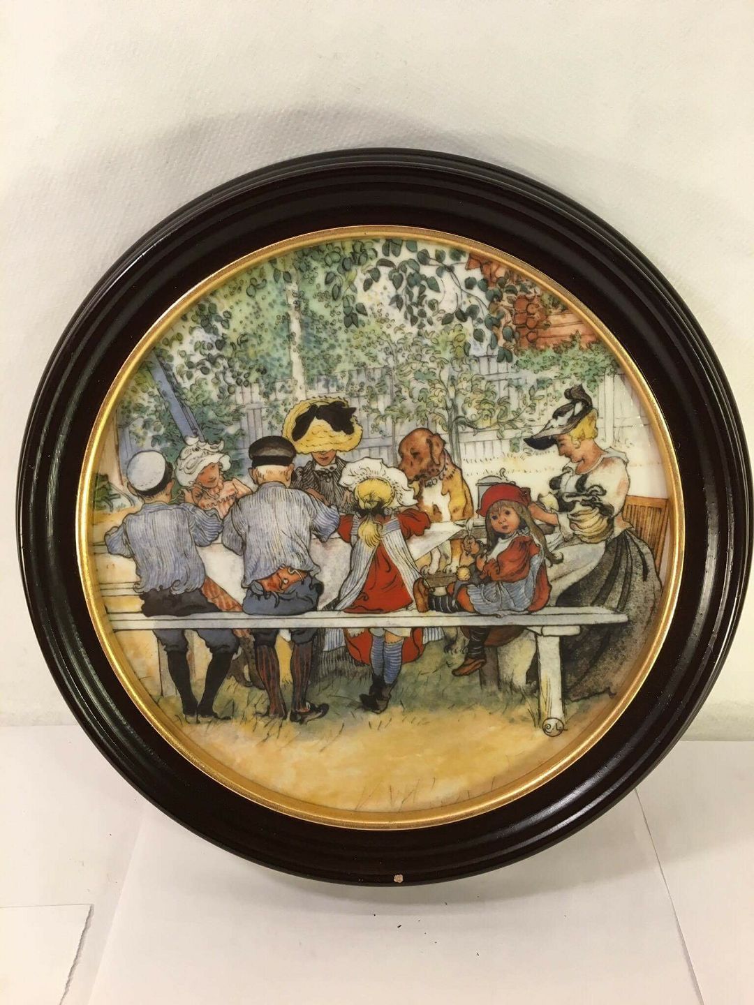 Royal. platter with motive by Carl Larsson. Made in 9500 copies frames of black lacquered wood. Ø 26 cm.