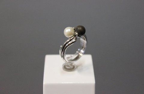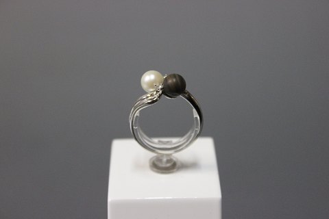 Ring in 14 ct. whitegold with 2 cultured Pearls (0,2 cm).
