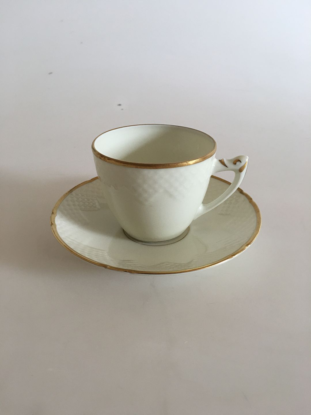 Bing & Grøndahl Åkjær Kaffekop og Underkop No 102. Creme med Guldkant. Kop måler 6.5 x 7.5 cm. I fin stand.