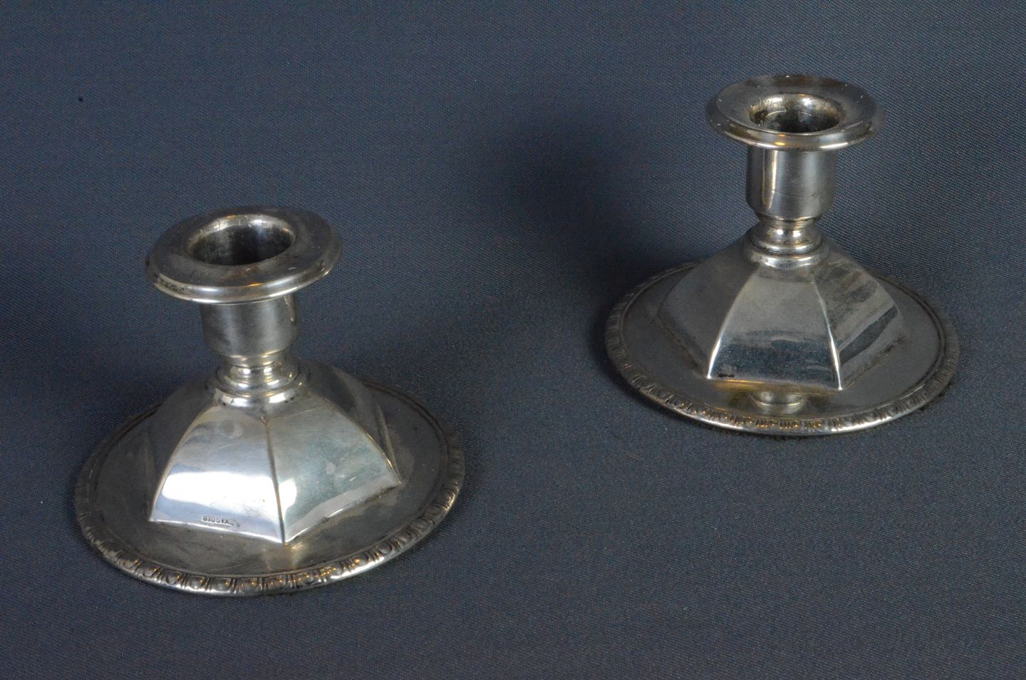 Sølvstager, mærket 830, h: 7 cm