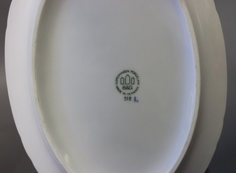 B&G musselmalet/blåmalet mellem størrelse ovalt fad, #318.