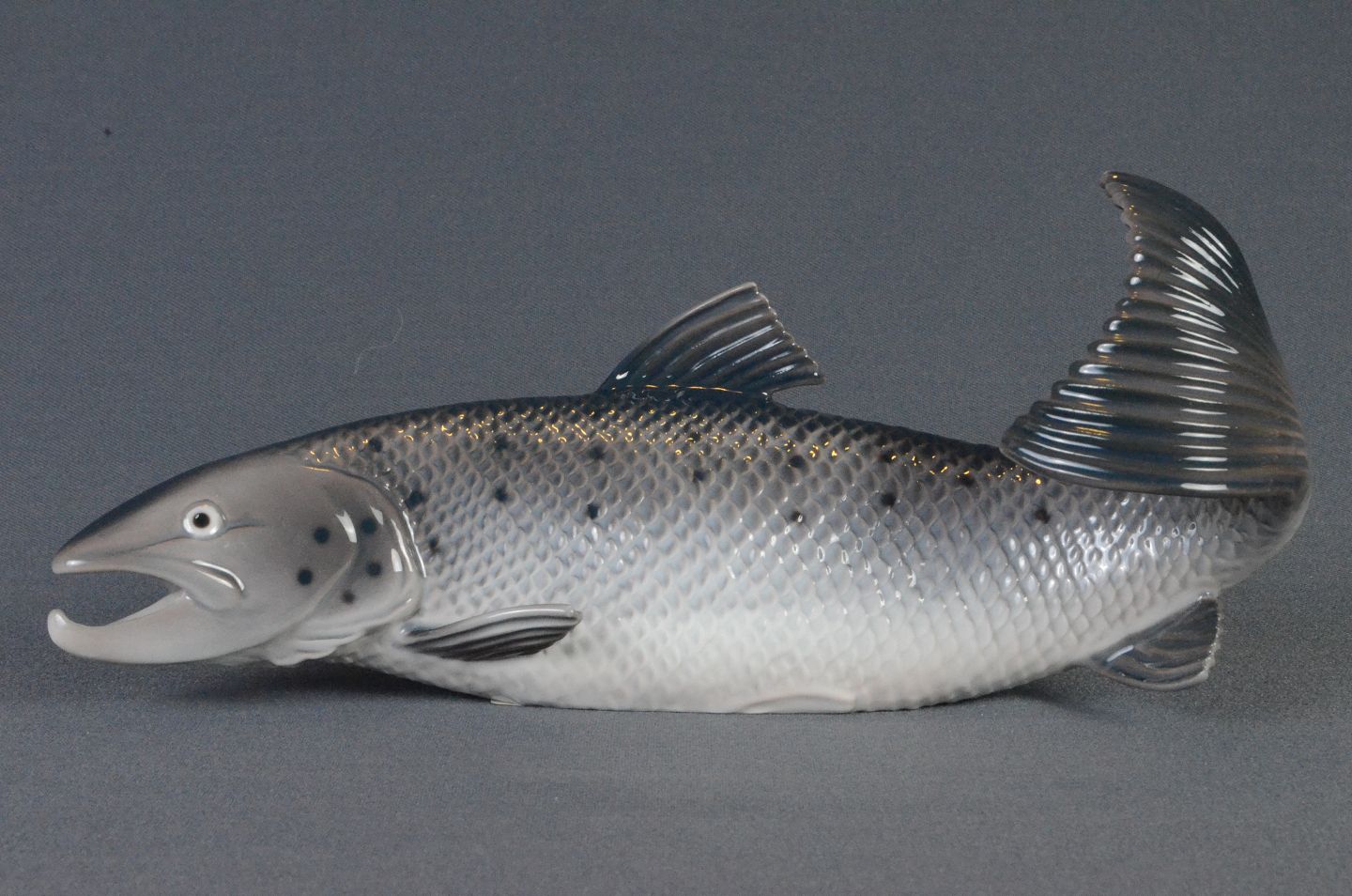 Porcelænsfigur, Bing & Grøndahl, Laks, h: 10 cm, l: 21 cm