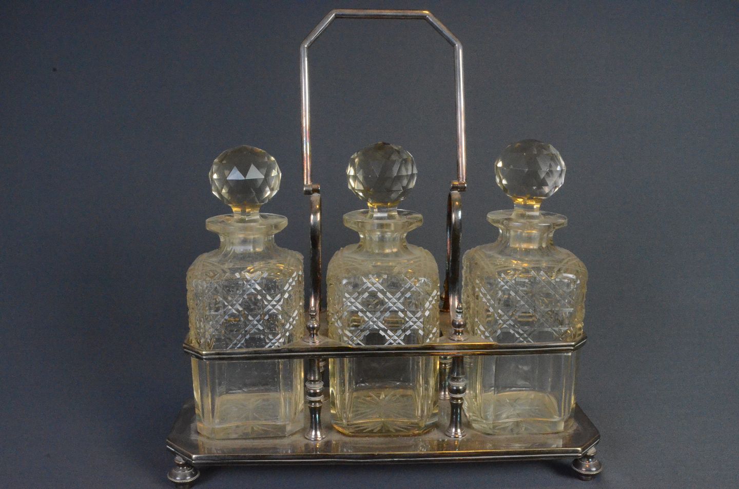 Karaffelholder med tre krystal karafler, Sølvplet, England ca. 1880-1890, 37x27 cm