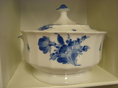Blå Blomst kantet terrin fra Royal Copenhagen i fin stand. D 29 cm, H 24 cm