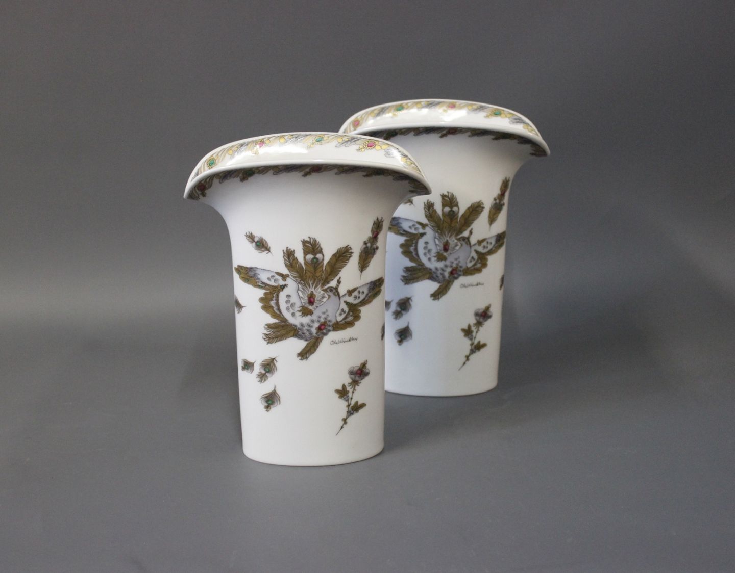 A pair of White decorated vases ffrom Hutschenreuter.