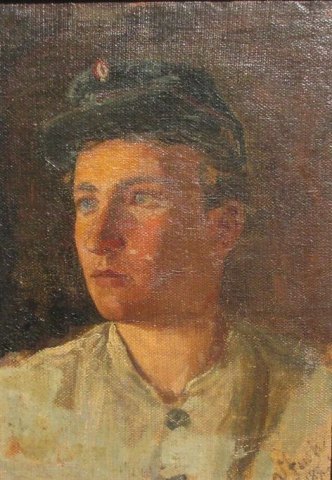 Fischer, Wilhelm Theodor (1857-1928) Denmark: Portrait of a soldier. Oil on canvas / wood. Signed .: V. Fischer 18 ..
