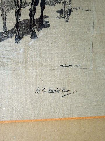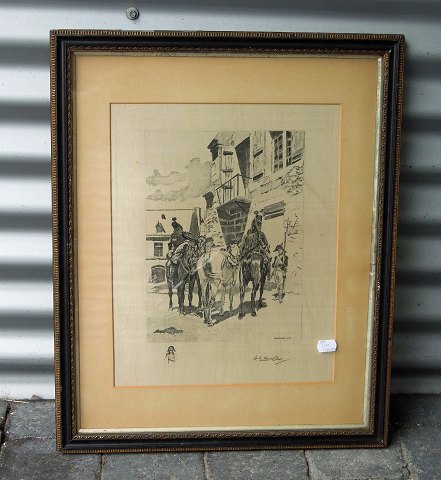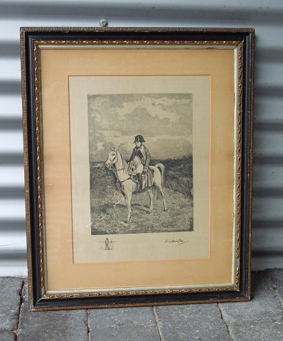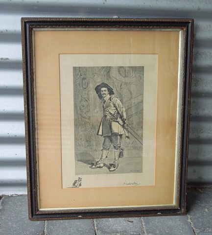 Et sæt på tre gamle indrammede franske tryk på satin. Den ene er med Athos fra de 3 musketer. Og Napoleon