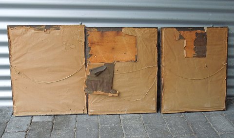Fremstår med brugsspor på et enkelt glas og afslag på rammerne og slidt bagbeklædning. Sælges samlet