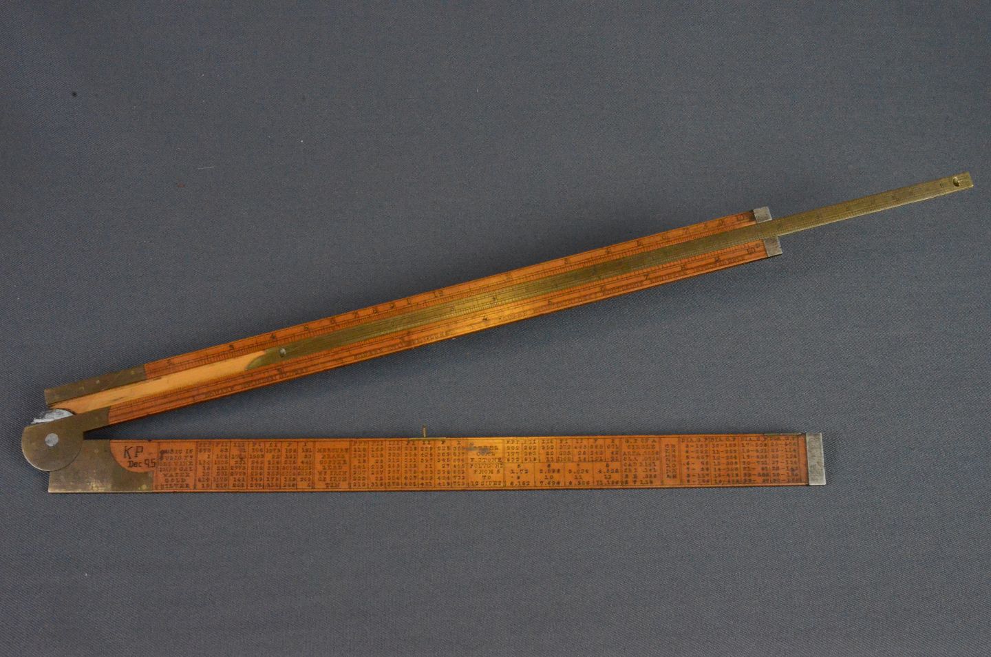 Lineal i træ og messing, l: 61 cm