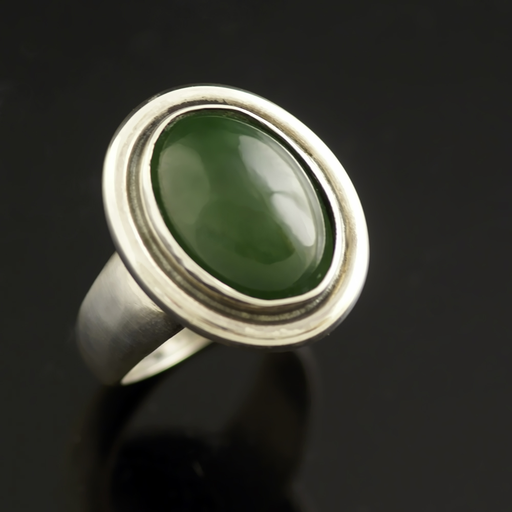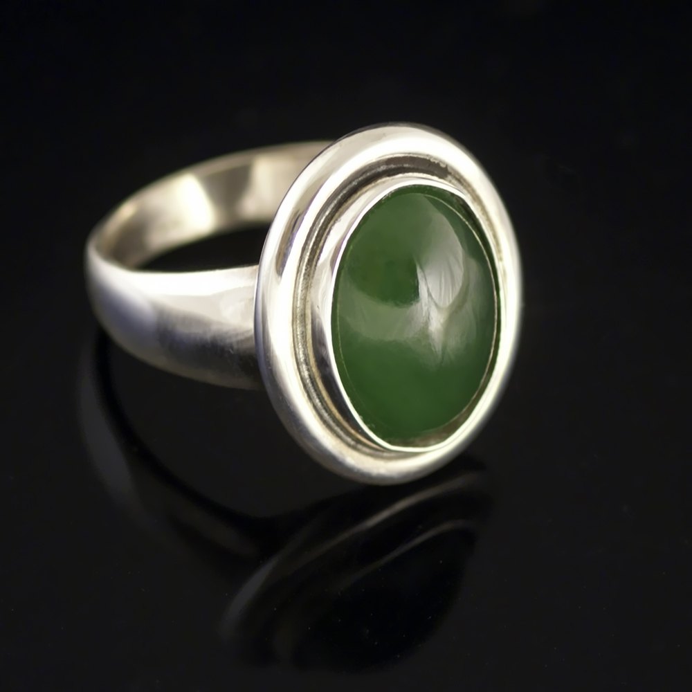 Hans Hansen. Ring i Sterling Sølv med Nephrit #93