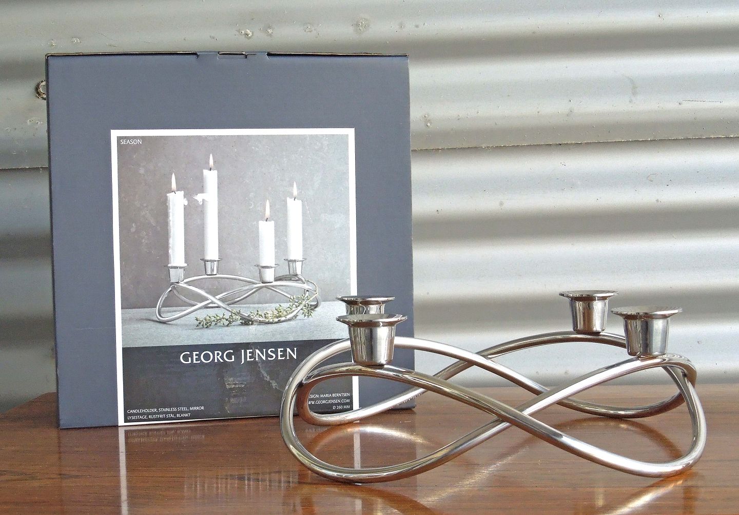 Ny Georg Jensen adventsstage. Udført i blankt rustfrit stål,