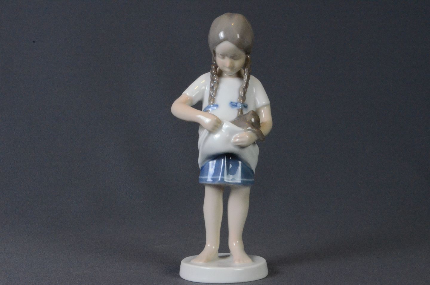 Porcelænsfigur, Royal Copenhagen, Pige med killing