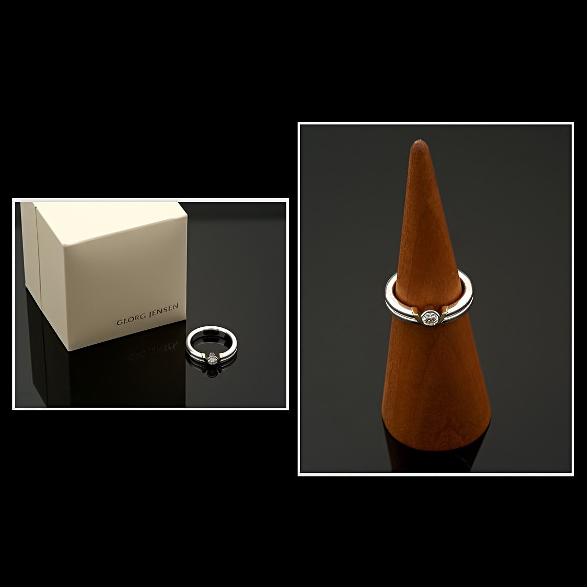 Georg Jensen Solitaire Ring i 18 kt guld & hvidguld med 0,20 ct diamant.