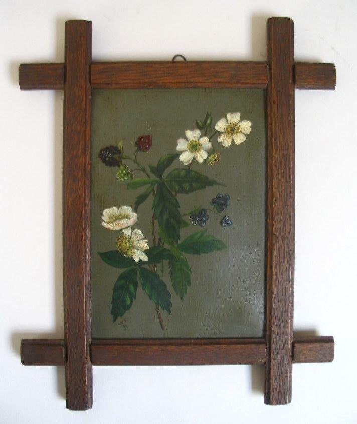 Danish flower painter (19th c.): A blackberry branch. Oil on cardboard. 15.5 x 11 cm. Sign .: Monogram WK 91.