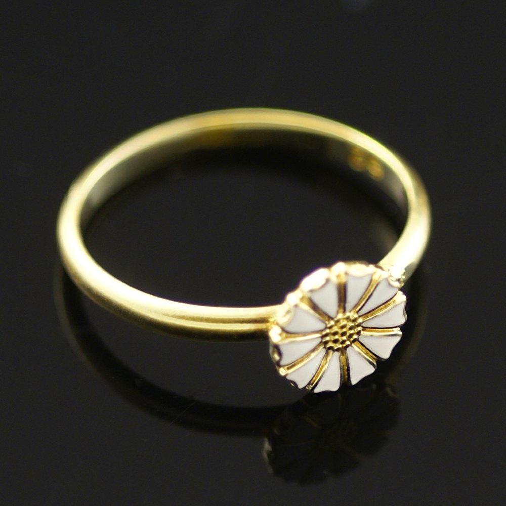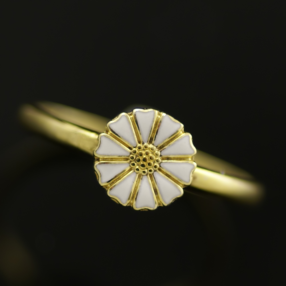 Bernhard Hertz. Marguerit / Daisy Ring i forgyldt Sterling Sølv med hvid emalje.