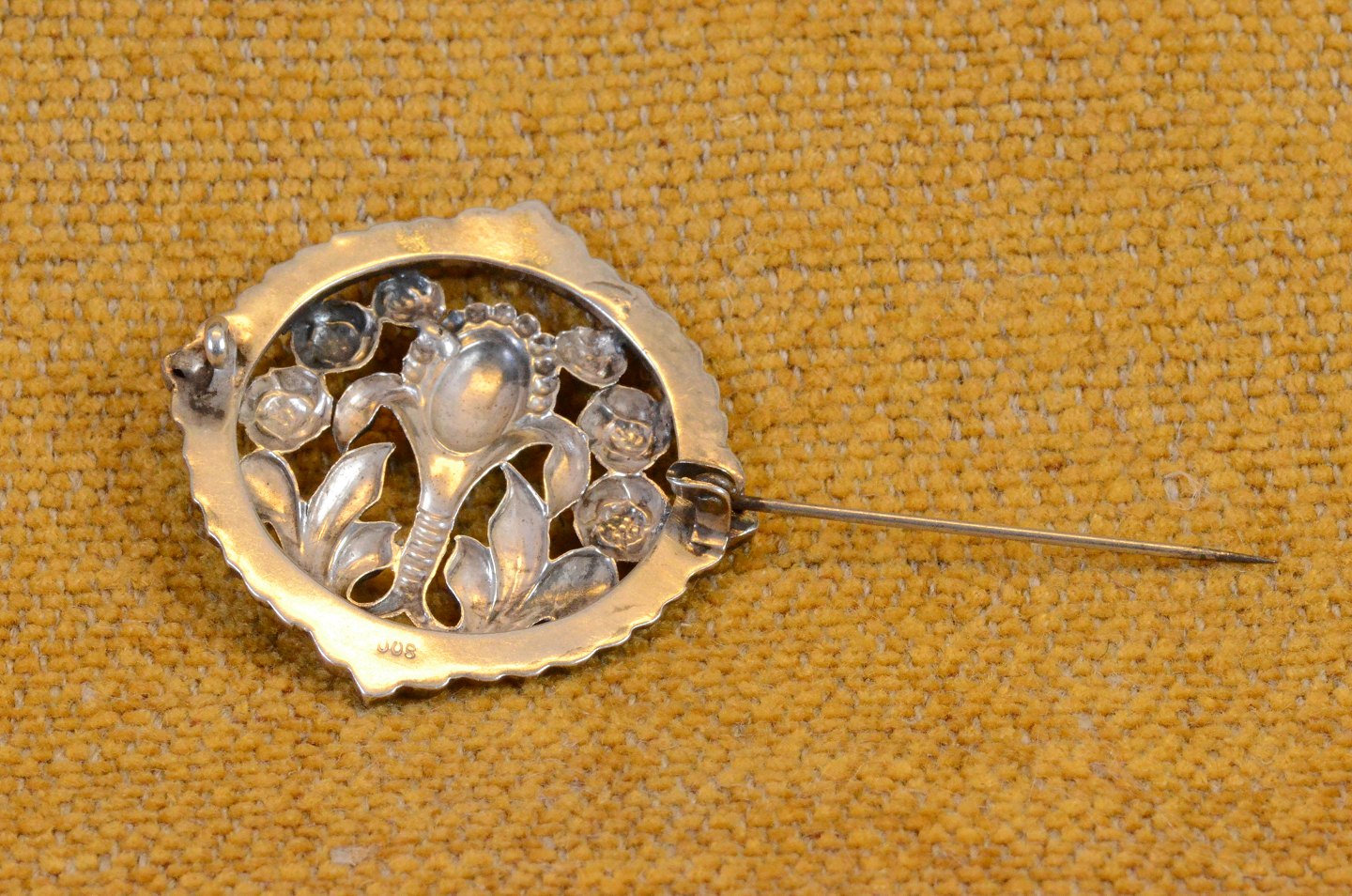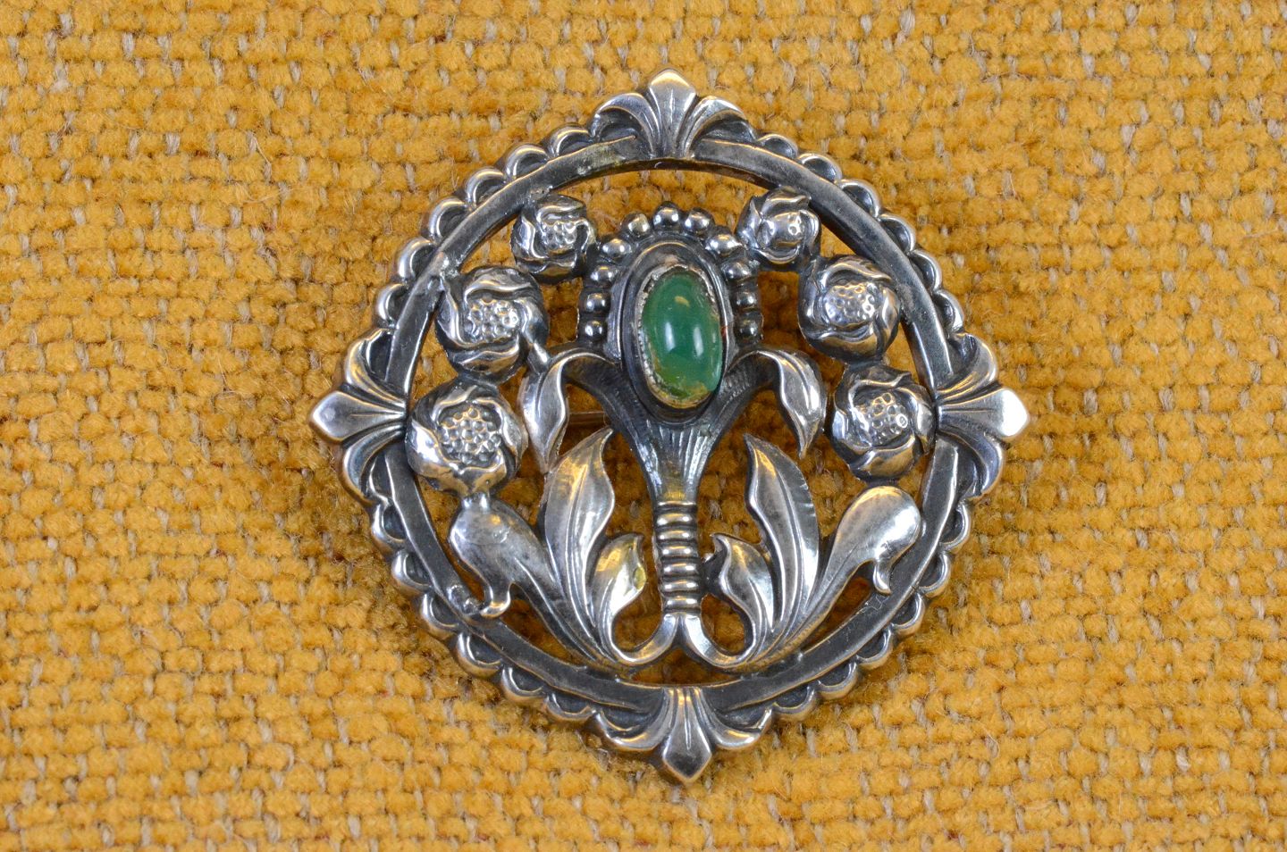 Broche blomsterbuket i sølv med grøn agat. Skønvirke inspireret. Stemplet 830. Art.No. 11