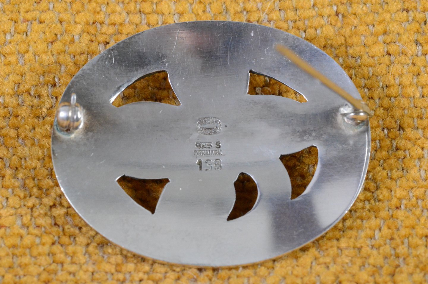 George Jensen skønvirke broche Nr. 138 med ovalt blomster motiv. Sterling og Lapis Lazuli