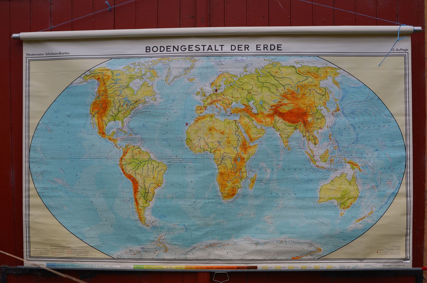 Skolekort, Tysk: Verden, Monteret på selvruller og med forlænger, Kortmål: 240 x 140 cm, (skolekort nr. 1)
