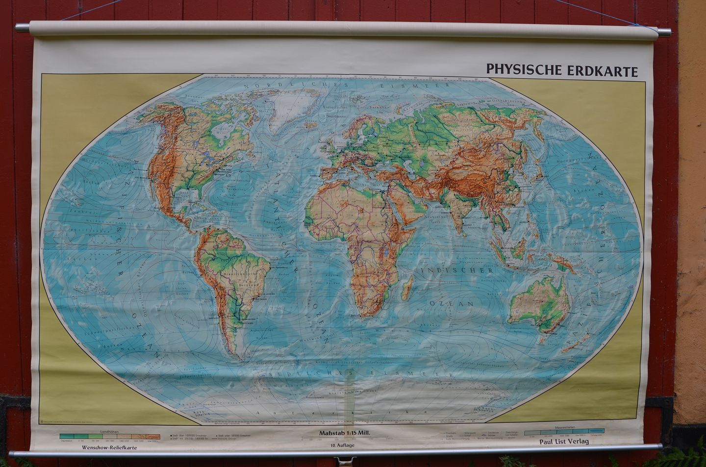 Skolekort, Tysk: Verden, Monteret på selvruller og med forlænger, Kortmål: 240 x 150 cm, (Skolekort nr 2)