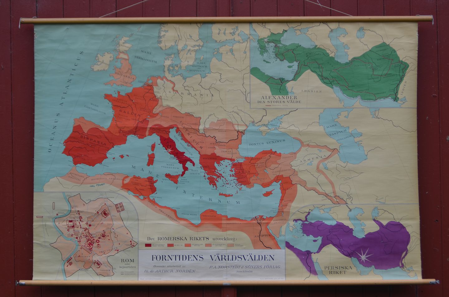 Skolekort, Svensk: Romerriget, Transportabelt med træstokke, 200 x 130 cm, (skolekort nr. 8)