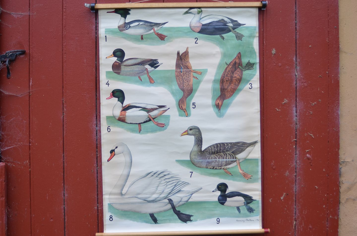 Anskuelsestavle med træstokke: Svømmefugle, Billedmål: 66 x 93 cm, (anskuelsestavle nr. 9)