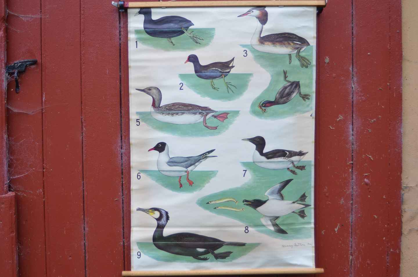 Anskuelsestavle med træstokke: Svømmefugle, Billedmål: 66 x 93 cm, (anskuelsestavle nr. 14)